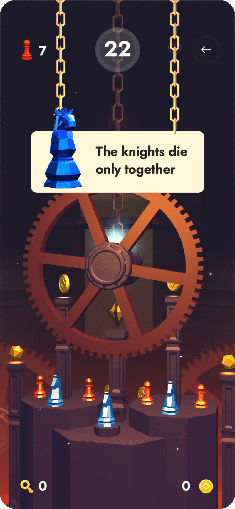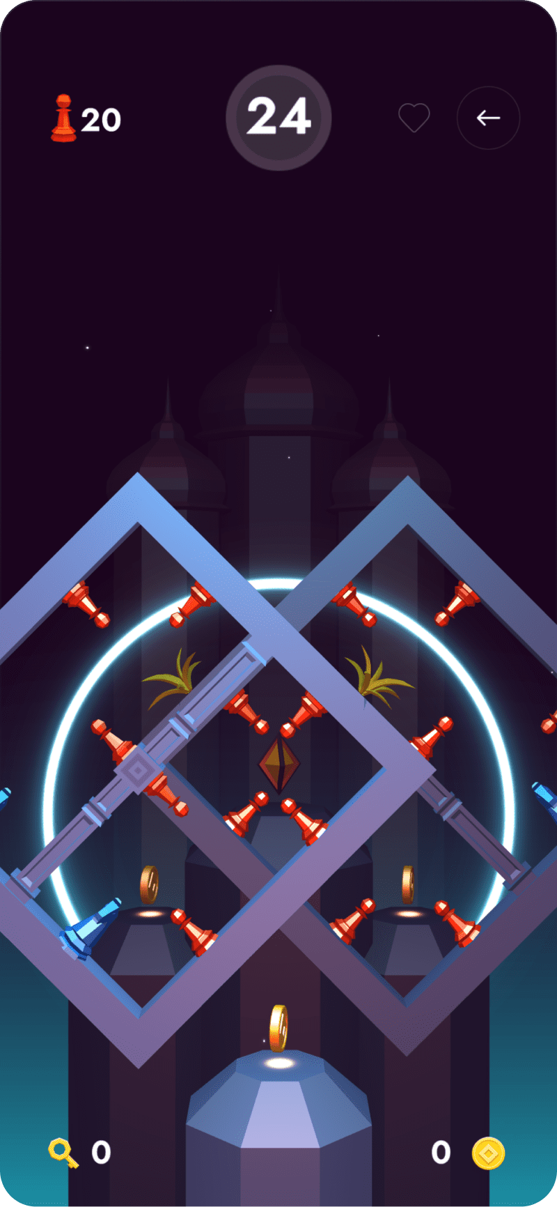 Destroy the chess pieces to discover the secret that hides the king. There are 100 unique levels with puzzles, great visual style and of course music.
